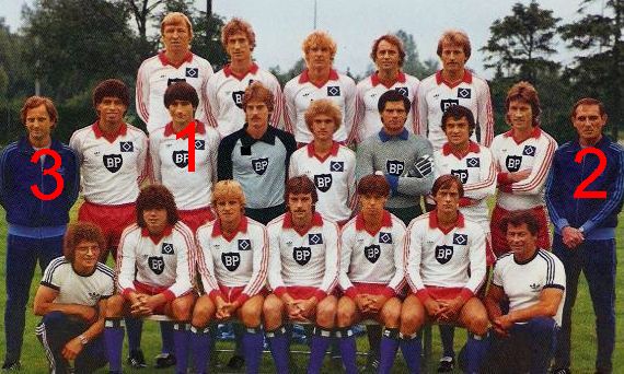 Nemački Hamburger je sezone 1980/81 osvojio vicešampionsku titulu u Bundes ligi, iza minhenskog Bajerna. Na grupnoj fotografiji fudbalera Hamburgera iz te sezone pronađite tri “pečalbara”. Klikom na fotografiju, dobićete njenu uvećanu verziju na kojoj su brojevima od jedan do tri označene tražene ličnosti.